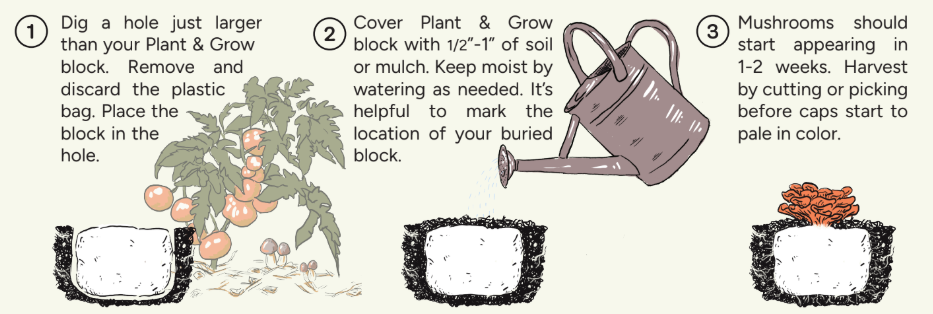 Easily plant delicious mushrooms at home - grown in the garden or raised beds, amongst your other veggies!